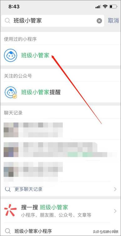小程序班级小管家如何给学生颁发奖状?1、进入手机微信,搜索“班级小管家”小程序,点击进入。或者直接下拉查找最近使用的小程序,找到“小管家”点击进入。