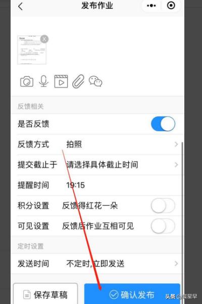 5、选择好了“反馈相关”的条件,在下方点击“确认发布”,最后可以分享到自己的班级群。