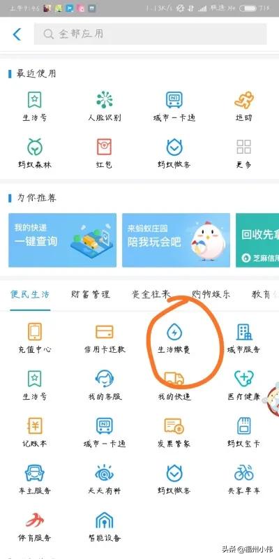 1.打开支付宝,我们可以看到首页就是生活缴费的选项。选中生活缴费。