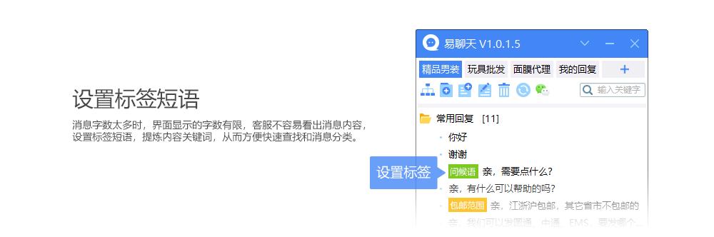 消息字数太多时,界面显示的字数有限,客服不容易看出消息内容。设置标签短语,提炼内容关键词,从而方便快速查找和消息分类。