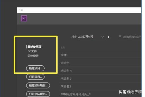 1、打开 PR 2019之后,点击页面中间的新建项目。