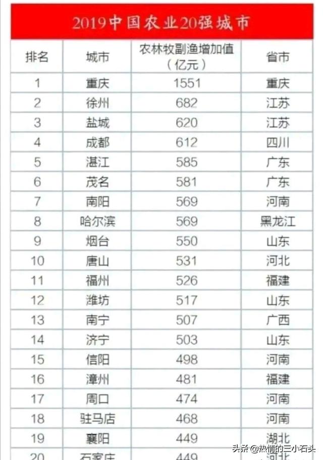 全国各市农业产值排行?2019年中国农业20强发布!南阳第七,信阳第十五,河南四市榜上有名。
