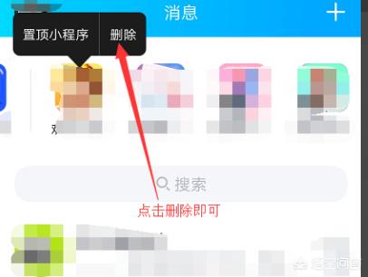 4、这时候,只需要长按住想要关闭的小程序然后选择删除即可关闭QQ的下拉小程序了。