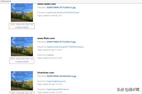 5现在显示在最上面的图片就是最大的。红框里显示了图片的格式、大小和体积。我们可以看到,前两张图片(分别来自reddit和flickr)是最大的。它们就是原图。