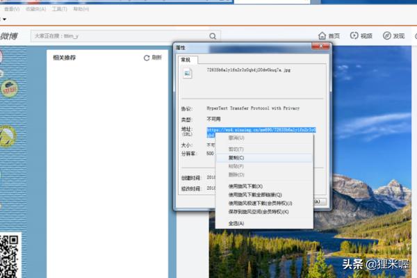 如何寻找网上图片的来源(如何找原图)?1这里以微博为例。这是一张很好看的风景图片,我们想要找到它的原图,应该怎么操作呢?首先右键点击图片,然后选择“属性”。