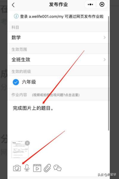 4、发布作业里教师可以选择“科目”、“年级”、“作业内容”可以用文字的形式或者拍照、录音等;根据布置作业的内容可以选择不同的“反馈方式”再点击右上角的“确定”。