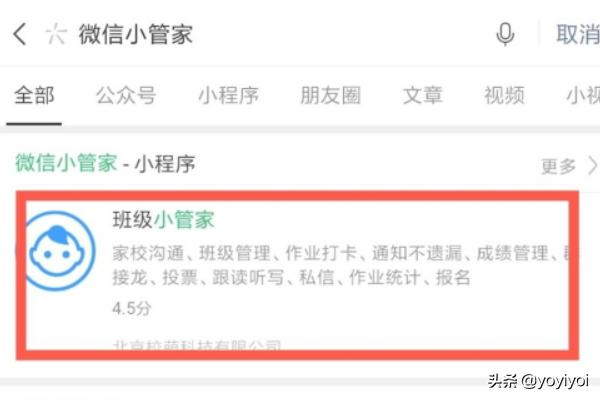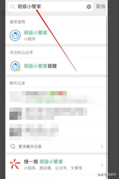 小程序班级小管家教师如何给学生发布作业?1、手机进入微信,搜索“班级小管家”,或下拉微信找到最近使用的小程序“小管家”点击进入。