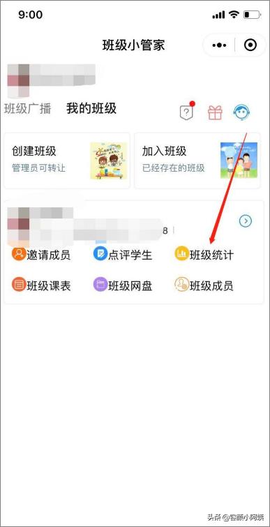 2、进入“班级小管家”点击“我的班级”,在我的班级里面找到“班级统计”,点击进入。