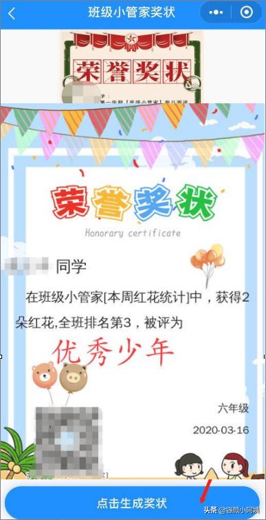 5、生成奖状后,可以把奖状分享在班级群或者打印。(图片中的二维码已打马赛克,仅做示例用)