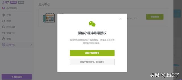 (1)如果你有小程序账号。就直接选择“已有小程序账号,前往授权”,用你的小程序账号扫描确认授权即可。