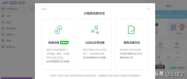 小程序的制作流程有哪些?1.「上线了」制作工具为例,注册账号后选择“创建小程序”再选一个你喜欢的模板,就能开始编辑小程序了