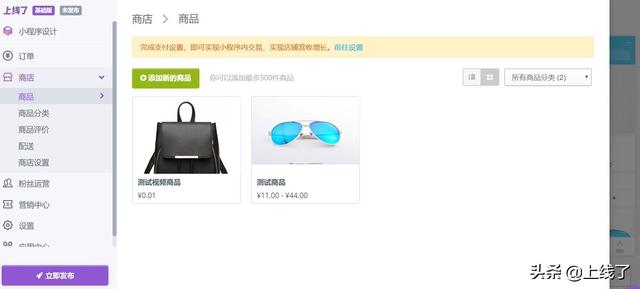3.在【商店】里,你可以添加新的产品,设置商品分类;