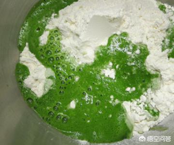 2. 揉面,用榨好的蔬菜汁立即揉面,那样擀面皮就成当然的绿皮了。