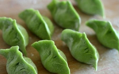 4. 接着就是擀饺子皮,做饺子的程序流程。实际上便是一般的水饺,用了蔬菜汁做绿皮令人更有胃口。